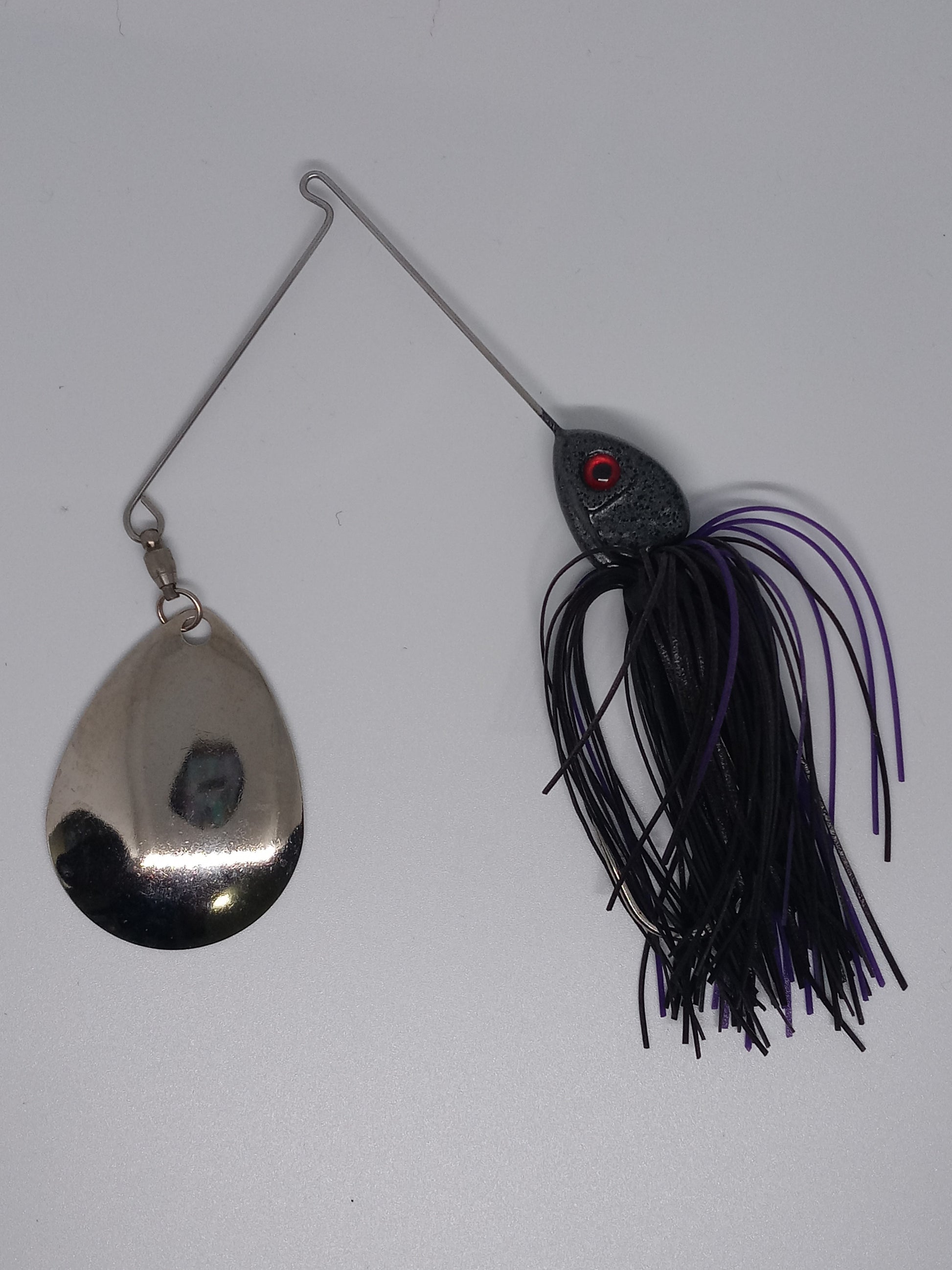 The DHT Nighttime Series spinnerbait is designed with a heavy wire frame and a large, flat head. The heavy frame gives this model spinnerbait lots of body and head vibration. This allows the fish to use his or her lateral line to help locate the bait. The big, flat head creates a larger profile. This helps when the fish are sight feeding, which is most of the time! Select head weight based on how deep you intend to fish. The deeper you’re fishing the heavier your spinnerbait should be. Use the nighttime models for after dark angling over weed beds or around lay downs or other forms of shallow structure.